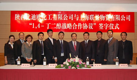 4月9日,陜西比迪歐化工有限公司與上海聯(lián)景物資有限公司在上海舉行“丁二醇戰(zhàn)略合作”簽字儀式。