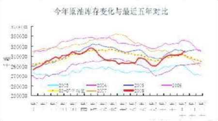 圖3-7、今年原油庫存變化與近五年平均對比