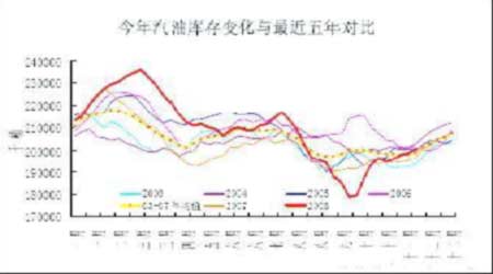 圖3-8、今年汽油庫存變化與近五年平均對比