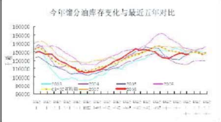 圖3-10、今年餾分油庫存變化與近五年平均對比