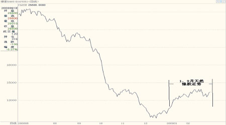 每年1~3月處于天然橡膠的停割季節。新膠上市量很少,多以消耗庫存為主。由于供給受限,在這期間,極有可能形成一波季節性上漲行情。而09年第一季度的行情似乎也正在印證著這一事實。但是由于2009年注定是不平凡的一年,70年一遇的經濟危機正席卷全球。這使得天膠的季節性上漲與往年又有所不同。由于天然橡膠需求急劇萎縮,今年泰國印尼等產膠國的天然橡膠庫存大幅增加。不得不由國家出臺政策承接大量現貨,調節橡膠價格。但在我國,由于天然橡膠市場較小,一旦國家收儲將對整個市場起到舉足輕重的作用。尤其在當前天然橡膠停割階段,可能會造成市場上短暫的供需緊張而推助膠價上漲。但從長期來看,橡膠需求的基本面并不能夠在短期內迅速好轉。這給天膠的長期走勢投下了陰影。