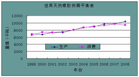 圖為1999-2008年各主要產(chǎn)膠國(guó)天然橡膠產(chǎn)量走勢(shì)圖。(圖片來(lái)源:IRSG)