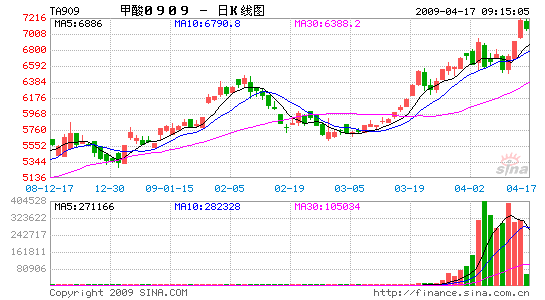 近日,受PTA供應(yīng)緊張、下游需求轉(zhuǎn)暖以及近洋PX合同貨高報(bào)支撐,鄭商所PTA走出前期回調(diào)行情,大幅上漲。周三PTA909合約收盤封于漲停,周四909合約再次大漲348點(diǎn),最終收于7188元/噸,突破7000整數(shù)關(guān)口。短期內(nèi)由于PX供應(yīng)仍無(wú)法緩解,PTA工廠無(wú)法有效提升裝置開(kāi)工率,同時(shí)下游聚酯企業(yè)也借助漲價(jià)順勢(shì)將成本壓力轉(zhuǎn)移至終端紡織服裝企業(yè),因此,預(yù)計(jì)短期內(nèi)PTA仍將維持強(qiáng)勢(shì),并有望繼續(xù)上行。但長(zhǎng)期來(lái)看,由于后期PX新增產(chǎn)能陸續(xù)投產(chǎn),PTA供應(yīng)有望增加,PTA后期壓力將逐漸增大。