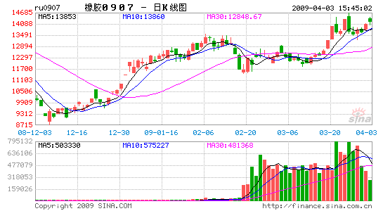 不過,主導當前市場行情的主要因素還在于市場的信心。上周,中國官方公布的采購經理人指數在3月份實現了連續4個月回升,并在3月份重新回到了50線以上,這意味著中國經濟正以驚人的速度恢復增長。而這背后,是一季度超常規的貨幣投放和投資增長的支持。1-2月份,中國新增貸款余額超過2.7萬億、城鎮固定資產投資增速為26.5%,空前的市場貨幣流動性,使得證券和商品市場價格都被節節推高。同時,美國經濟活動也有出現觸底的特征。首先,是美國2月房屋開工和建筑許可雙雙自紀錄低位回升,為10個月來首次增長。其次,是一季度美國制造業指數在35附近連續止跌小幅回穩。此外,3月底財政部、國家稅務總局發布了《關于提高輕紡 電子信息等商品出口退稅率的通知》,明確從2009年4月1日起提高紡織品、服裝、輕工、電子信息、鋼鐵、有色金屬、石化等商品的出口退稅率,也惠及多種商品價格。市場預計合成膠產品的出口退稅將從5%提升至11%,這對天膠價格來說也構成利多。