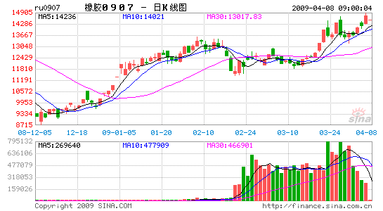 受國內汽長銷量強勁增長,及全球大宗商品持續反彈的利好刺激,昨日,滬膠期貨大漲近5%至15005元/噸,創出年內價格新高。分析人士表示,技術上看,橡膠上漲趨勢已經顯現,不過基本面上供需壓力仍然持續,預計市場筑底過程將會反復。