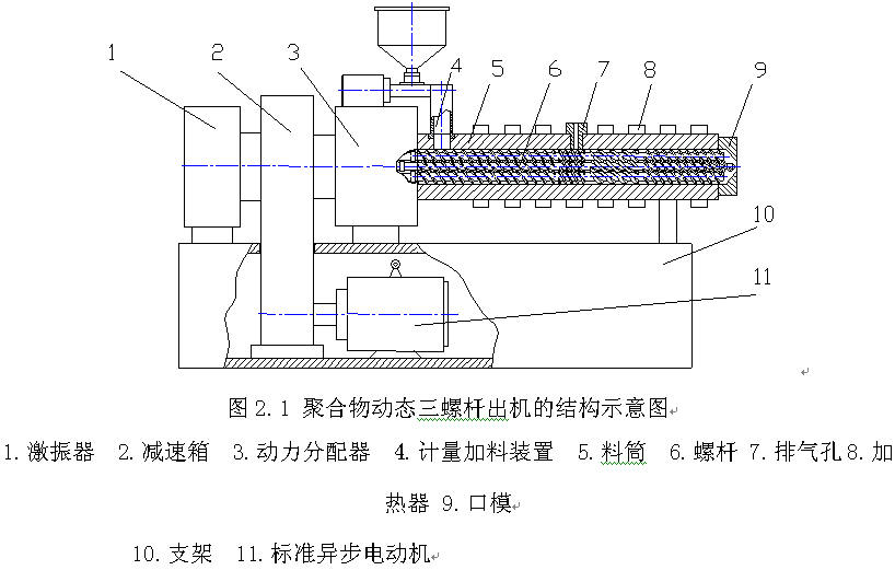 2.2聚合物動態三螺桿擠出機的結構原理
