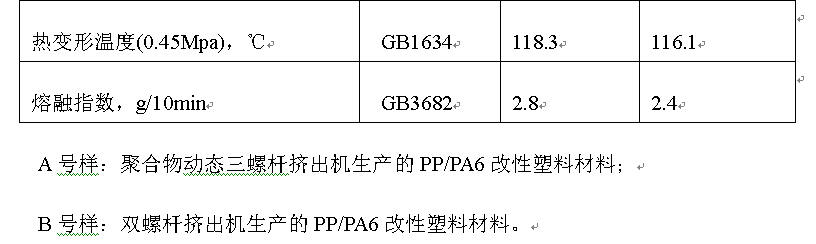 3.1制品的性能比較 以PP/PA6改性塑料為對象,對聚合物動態三螺桿擠出機與傳統雙螺桿擠出機的制品進行比較分析.