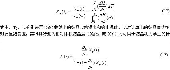 通過對DSC曲線上部分峰積分的方法可獲得降溫過程中不同時刻的結晶度: