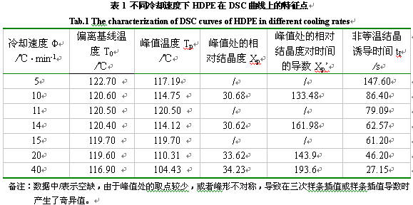 p’.從圖1中獲得的特征點列于表1,可按前述理論部分進行HDPE的結晶動力學計算。