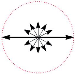 因為偏極光的理論是用波動學來解釋的,所以往后的討論都將光視為電磁波,并且為了簡化易懂,我們只考慮其電場向量E。非偏極光的E可以用圖2表示,圖2中許多對稱等長的輻射線表示E在E、H所組成的平面上振動,并且在各方向振動的機會均等。當E的分布不均時就稱之為偏極化(Polarization),如圖3所示為部份偏極光,當E只在一個方向振動時則稱之為線性偏極光(圖4)。從向量的觀點來看,當圖2中各方向的向量投影到X和Y兩個相互垂直的坐標軸上后,非偏極光可以分解為兩條相垂直的線性偏極光(圖5)。