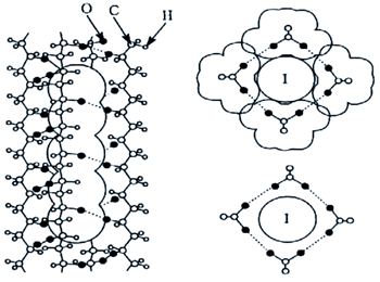 時下最通用的偏光膜是蘭特在1938年所發明的H片,其制法如下:首先把一張柔軟富化學活性的透明塑料板(通常用PVA)浸漬在I2 / KI的水溶液中,幾秒之內許多碘離子擴散滲入內層的PVA,微熱后用人工或機械拉伸,直到數倍長度,PVA板變長同時也變得又窄又薄,PVA分子本來是任意角度無規則性分布的,受力拉伸后就逐漸一致地偏轉于作用力的方向,附著在PVA上的碘離子也跟隨著有方向性,形成了碘離子的長鏈。因為碘離子有很好的起偏性,它可以吸收平行于其排列方向的光束電場分量,只讓垂直方向的光束電場分量通過,利用這樣的原理就可制造偏光膜(如圖8)。