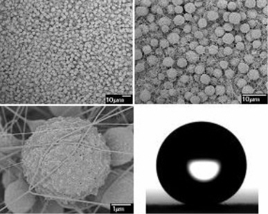 多孔微球與納米纖維復合薄膜的SEM照片及接觸角