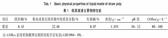 本實驗采用河南南陽馬亭造紙廠生產排出的紙漿廢液其主要物理性能見表1。