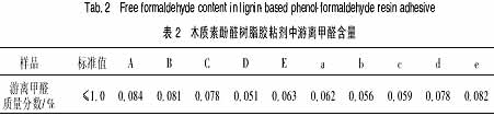 測試結果如表2所示,本實驗制取的膠粘劑游離甲醛含量均大大低于酚醛樹脂、脲醛樹脂,熱壓成型試樣時,現場幾乎感覺不到刺、刺眼的甲醛味道。