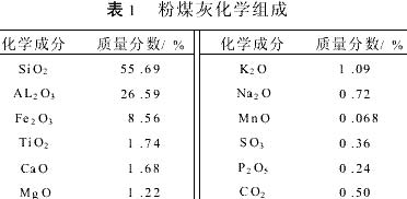 1。1。1 實驗用粉煤灰的化學組成實驗用粉煤灰取自沈陽某電廠,其化學成分分析結果如表1所示。