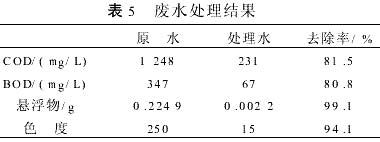 選用上述最佳實驗條件,處理造紙廢水的結果如表5所示。