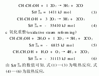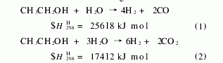 從長遠(yuǎn)觀點(diǎn)看, 生物質(zhì)發(fā)酵法生產(chǎn)乙醇必將成為主流。生物質(zhì)在成長過程中能夠吸收大量的二氧化碳, 盡管乙醇生產(chǎn)、制氫也放出二氧化碳, 但是整個(gè)過程形成一個(gè)碳循環(huán), 不產(chǎn)生凈的二氧化碳排放。另外, 乙醇無毒、不含易使燃料電池鉑電極中毒的硫、易于儲(chǔ)存和運(yùn)輸。因此由乙醇催化制氫必將是一種很有前景的方法。