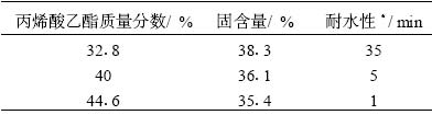 表 1 丙烯酸乙酯用量對(duì)乳液性能的影響