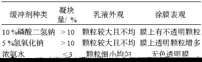 表 6 緩沖劑對(duì)乳液性能的影響