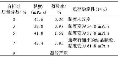 表 1 有機硅用量對硅丙乳液穩定性的影響