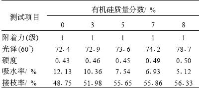 表 2 有機硅用量對涂膜性能的影響