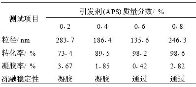 表 3 引發劑用量對乳液性能的影響