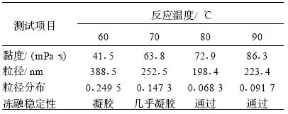表 4 聚合溫度對乳液性能的影響