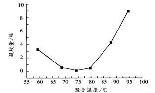 通過考察凝膠量 , 探討了聚合溫度對合成反應穩定性的影響 , 如圖 1 所示。綜合考慮 , 確定最佳反應溫度為 80 ℃ 。