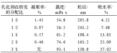 表 6 乳化劑在核殼內的分配比例對乳液穩定性以及涂膜吸水率的影響