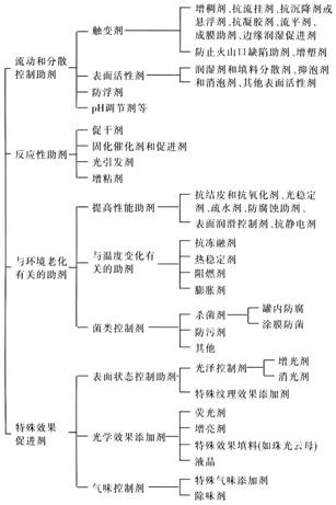 助劑已經(jīng)成為保證涂膜性能的關(guān)鍵原料。按照 Vladimir 等人的歸納,涂料用助劑主要有下列 4 大類型:
