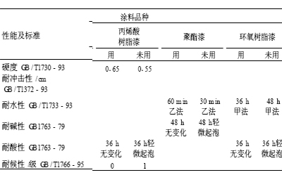 應用該改性聚酯白漿所制各類白色漆與按常規制法制得的同類白色漆相比 , 其涂膜在某些性能上有所改善 , 具體對比如表 1 。