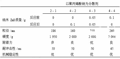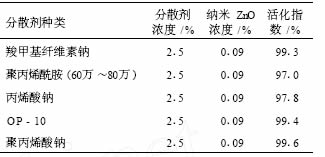 表 4 分散劑對納米 ZnO 分散效果的影響