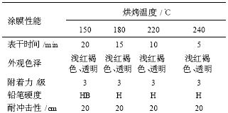 表 2 鄰苯二酚 - 桐油樹脂的熱烘干成膜性能