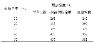 表 4 鄰苯二酚 - 桐油樹脂涂膜和生漆涂膜的熱穩(wěn)定性比較