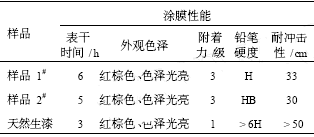 表 1 鄰苯二酚 - 桐油樹脂和生漆漆酚的自干性能比較
