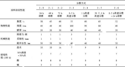 表 5 不同分散方式對涂層性能的影響