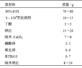 表 6 納米復合防銹涂料指導配方