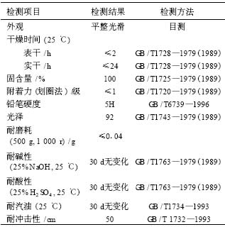 對研制出的納米插層聚氨酯改性的環氧彩色地坪涂料進行了涂膜性能測試 , 結果見表 4 。