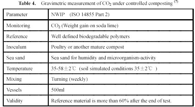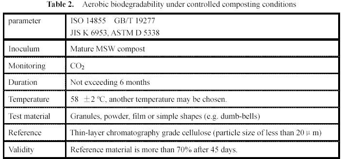 到目前為止,已經(jīng)頒布三個有氧測試方法(ISO 14851,14852,14855),兩個堆肥條件下的分解測試方法(ISO 16929,20200)以及一個有氧土壤埋設(shè)測試方法(ISO 17556)。因此目前我們一共有了六個已頒布的ISO標(biāo)準(zhǔn)。另外,還有兩個無氧測試方法(ISO 14853,15985)將在近期頒布。