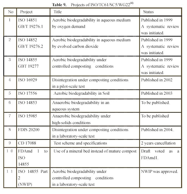 ISO/TC61/SC5/WG22關(guān)于生物分解性的工作現(xiàn)狀