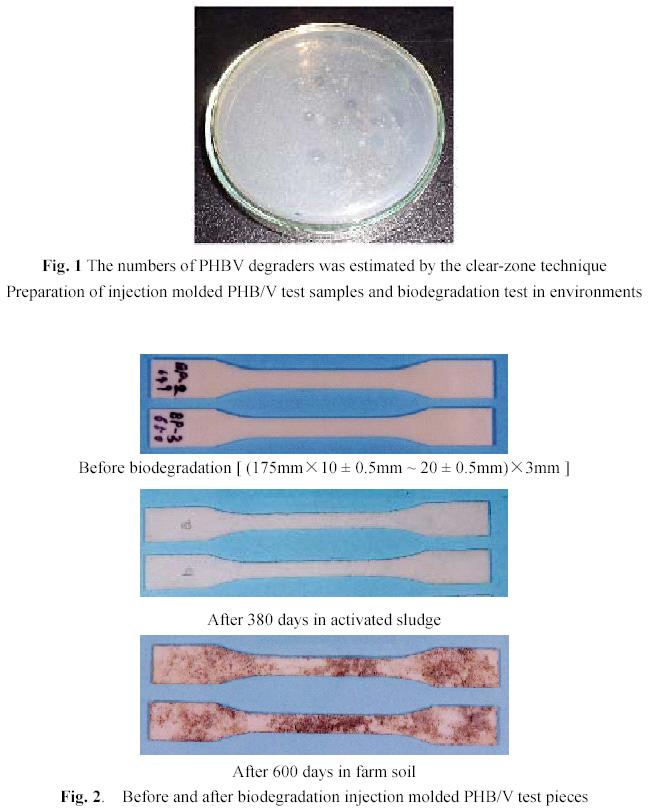 Key Words: Biodegradation; film-MPN method; PHB/V degrader; natural environment; injection molded PHB/V sample.