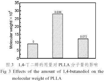 (2)采用極少量的1,4-丁二醇作為復(fù)合引發(fā)劑可顯著提高聚L-乳酸的分子量。