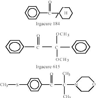 將表1 5 種光引發(fā)劑,即提高有色體系表干性能的Irgacure651 和Irgacure184 和提高有色體系里干性