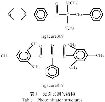 光活性齊聚物Viajet 100 和光活性單體Viajet 400由比利時UCB 公司提供;光引發(fā)劑Irgacure369、Irgacure184、Irgacure651、Irgacure819、Irgacure907、紅色顏料5B-K 由瑞士汽巴精細化學品有限公司提供。