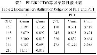 通過以上對PCT的DSC等溫結晶性能分析,得到