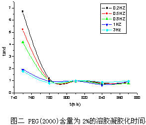 ,因此可以準確測量溶膠的凝膠化時間[1 2]。我們采用動態線性小振幅剪切震蕩實驗來觀察不同頻率下耗能模量和儲能模量隨著時間的變化情況,也即溶膠在凝膠化過程中的粘彈性變化。