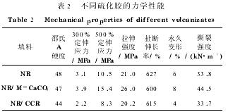 新型改性納米碳酸鈣MCaCO3在天然橡膠中分散性好,與橡膠基體形成了良好的結(jié)合,對(duì)天然橡膠具有顯著的補(bǔ)強(qiáng)作用,其效果明顯優(yōu)于商品化的硬脂酸改性超細(xì)碳酸鈣CCR.