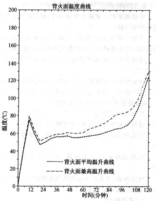 實驗爐升溫曲線和標準升溫曲線的比較如圖3所示,阻火圈平均及最高溫升如圖4所示實驗爐平均溫升曲線