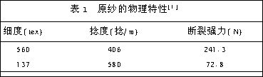 本實驗采用2種不同號數和捻度的玻璃纖維原紗進行空氣變形,其物理特性如表1所示。