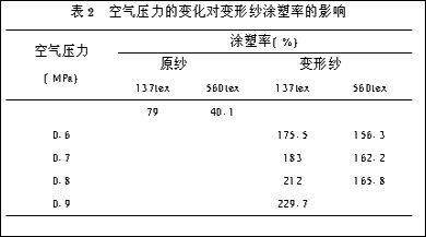 2. 空氣壓力對變形紗涂塑率的影響